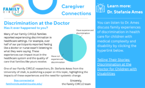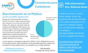 Family CIRCLE Newsletter #6 – Discrimination at the Doctor Posted on November 10, 2025 Links: “Telling their Stories: Discrimination at the Doctor for Children with Disabilities” – https://www.youtube.com/watch?v=xkoS0qhCtiE En español: